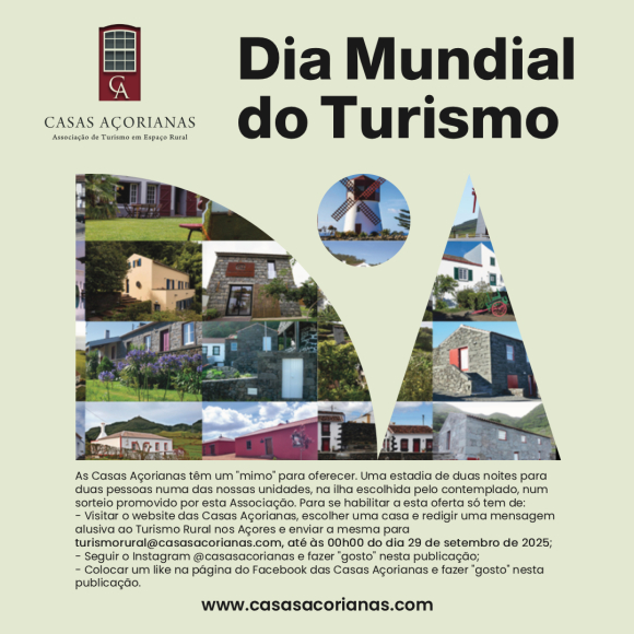 No Dia Mundial do Turismo as Casas Açorianas têm um "mimo" para oferecer. Trata-se de uma estadia de doi dias para duas pessoas numa das unidades nossas associadas, num sorteio promovido por esta Associação.